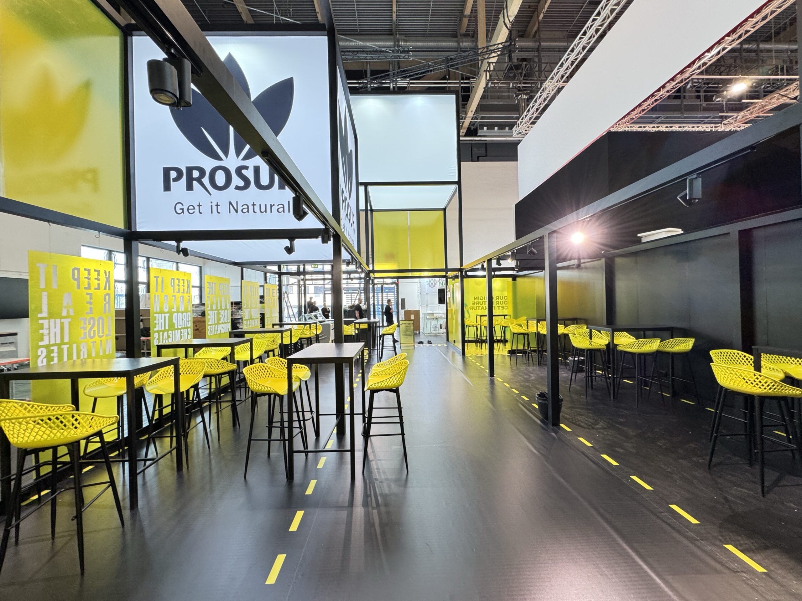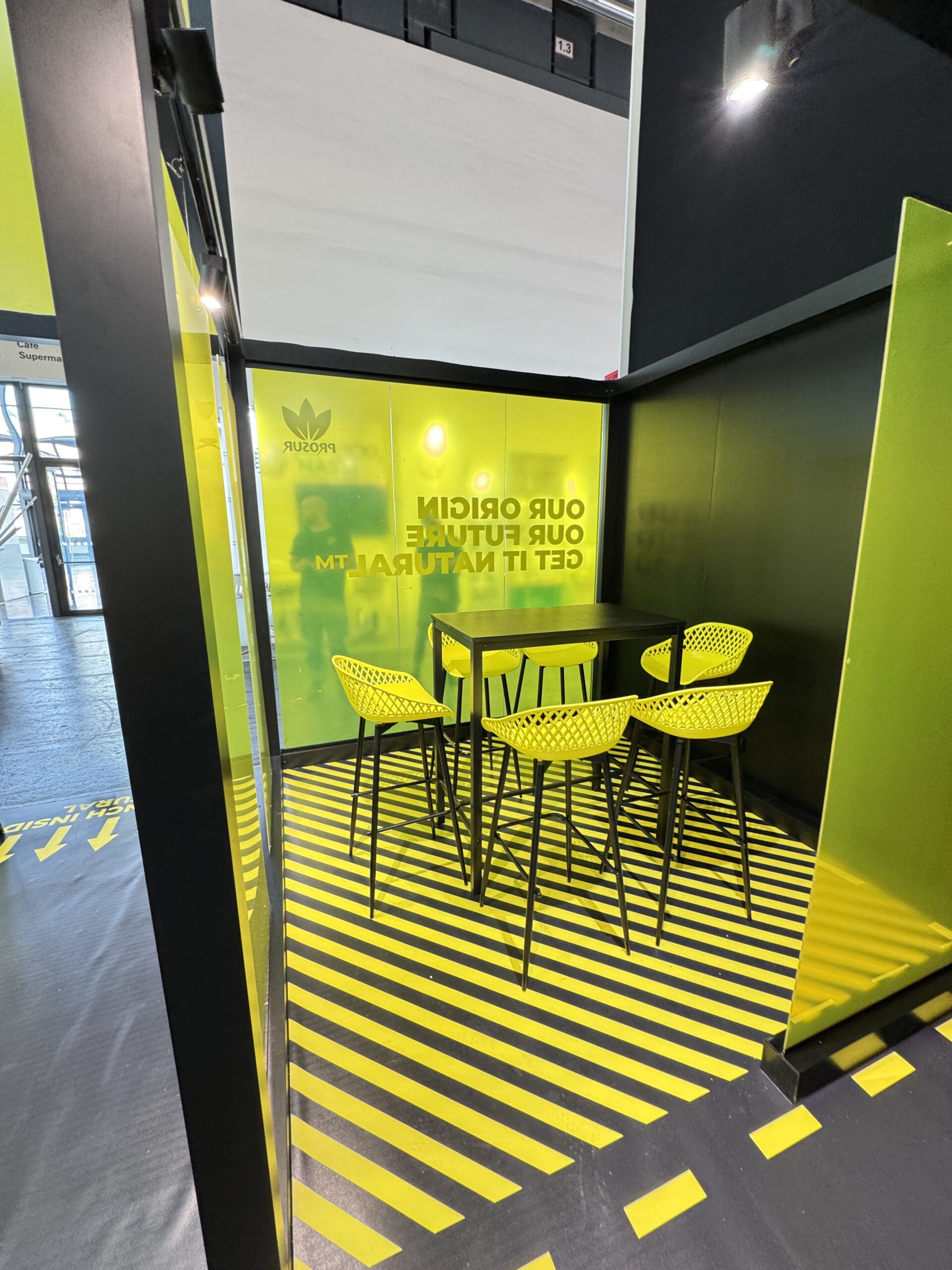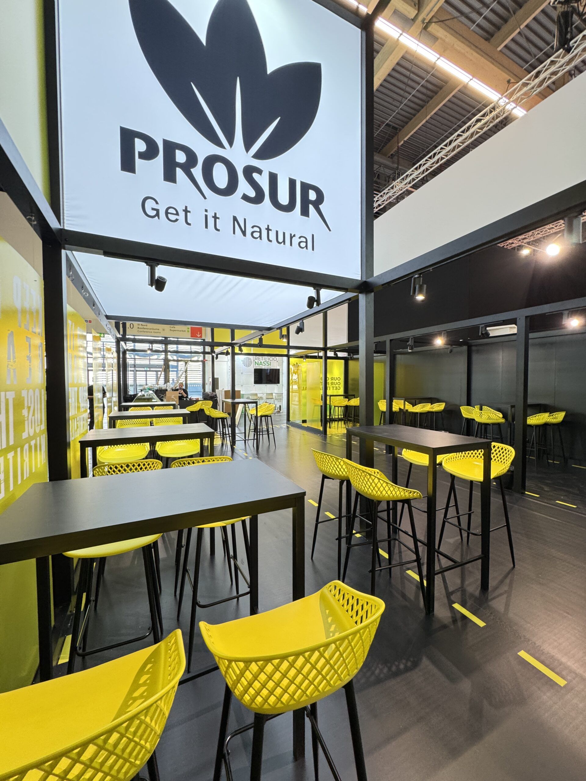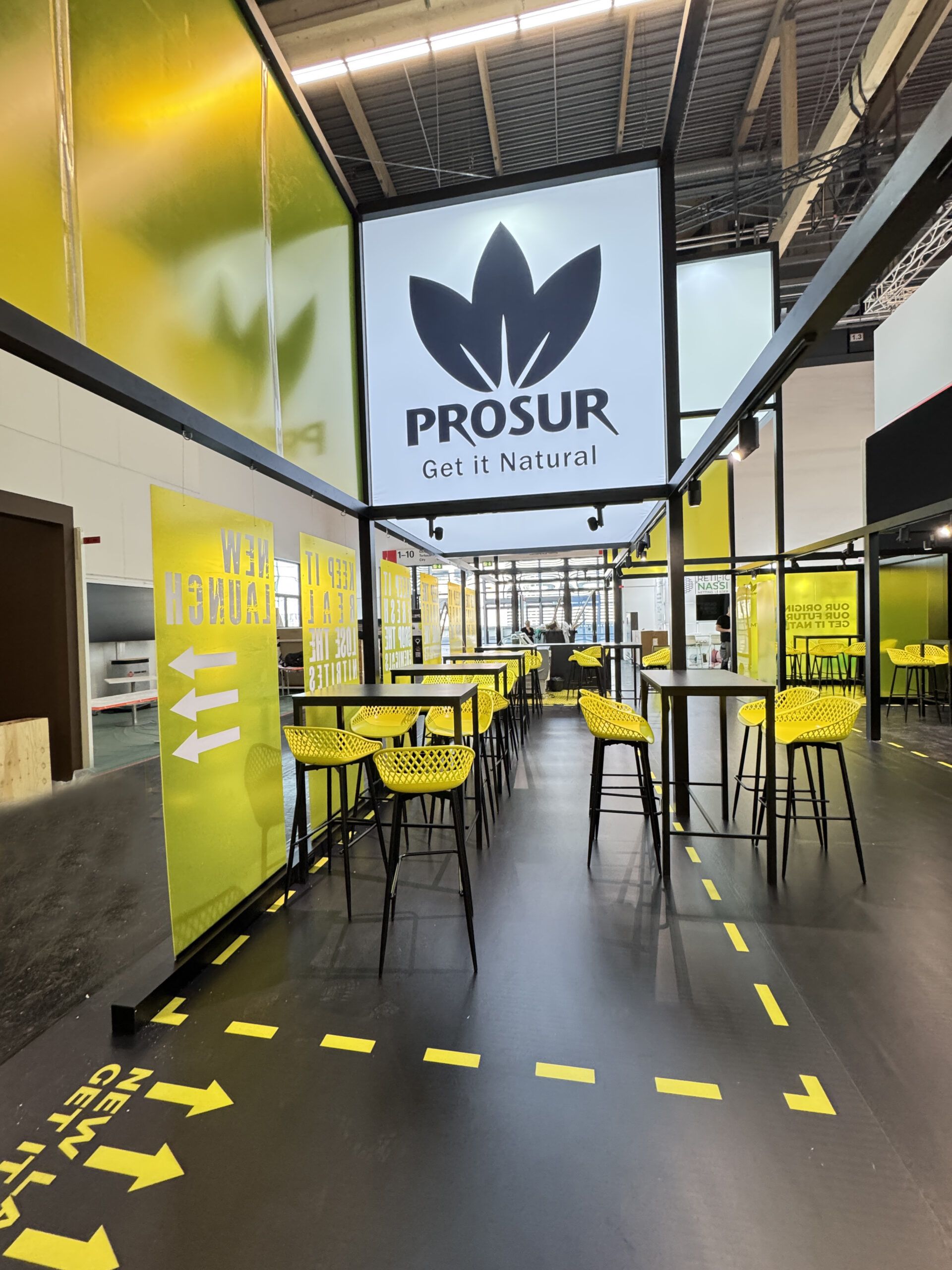 Resultado: un stand corporativo con alma de street brand -ordenado, vibrante y altamente fotogénico- que capitaliza el color, la luz y la modularidad para amplificar el posicionamiento natural de Prosur y acelerar la conversación comercial en la feria.